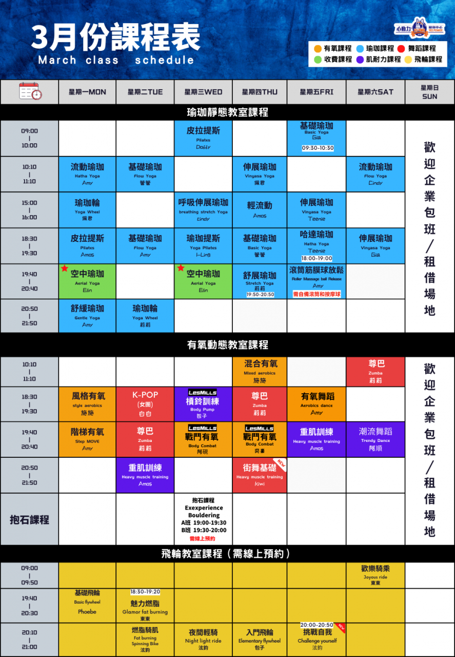 3月份課表