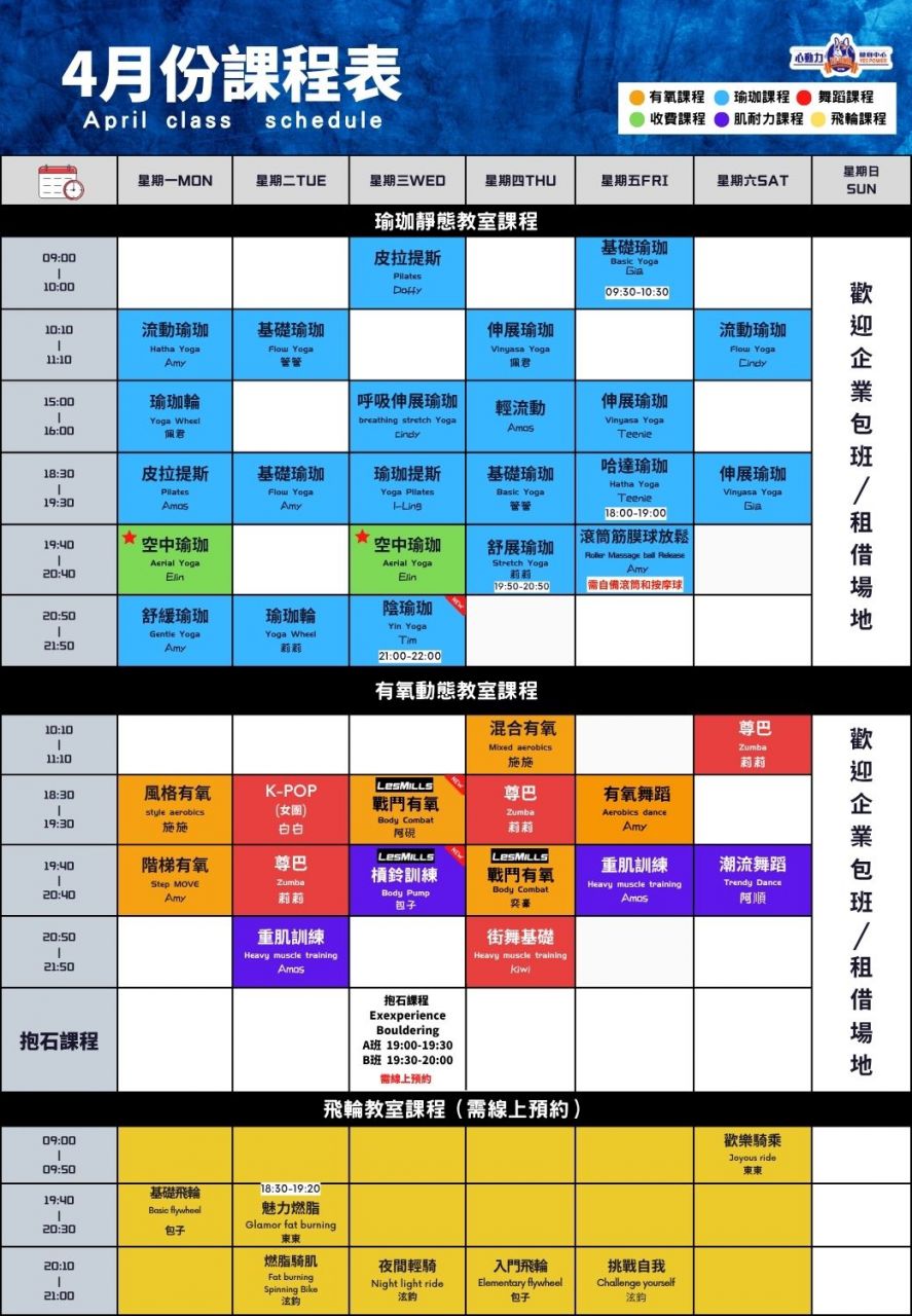 4月份課表